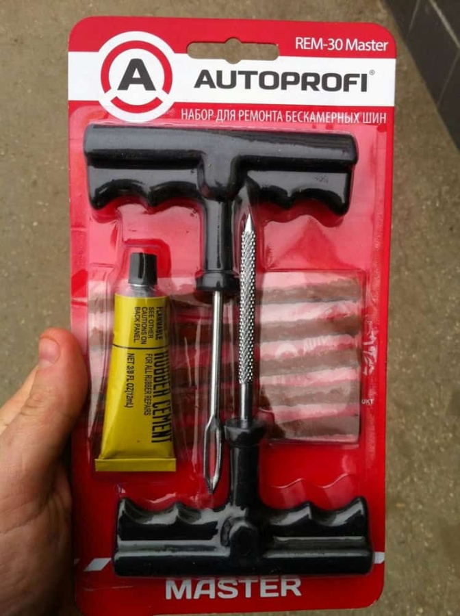 Autoprofi набор для ремонта бескамерных шин клей шило рашпиль жгуты