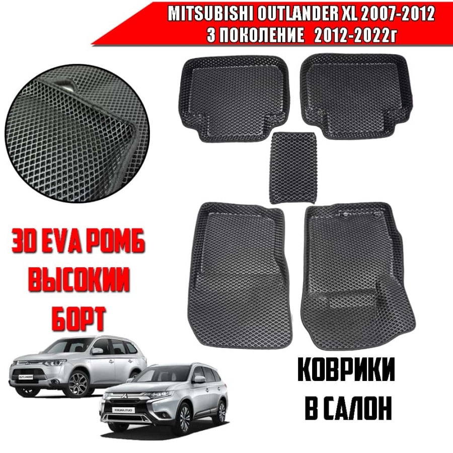 BORATEX коврики в салон 3D EVA Mitsubishi Outlander XL 7-12г 3 пок-е 12-22г черн рис ромб компл 5шт