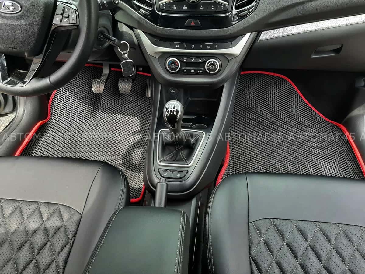 EVA ЭВА 3D коврики в салон LADA Vesta Веста черные красный кант рисунок ромб комплект 5шт