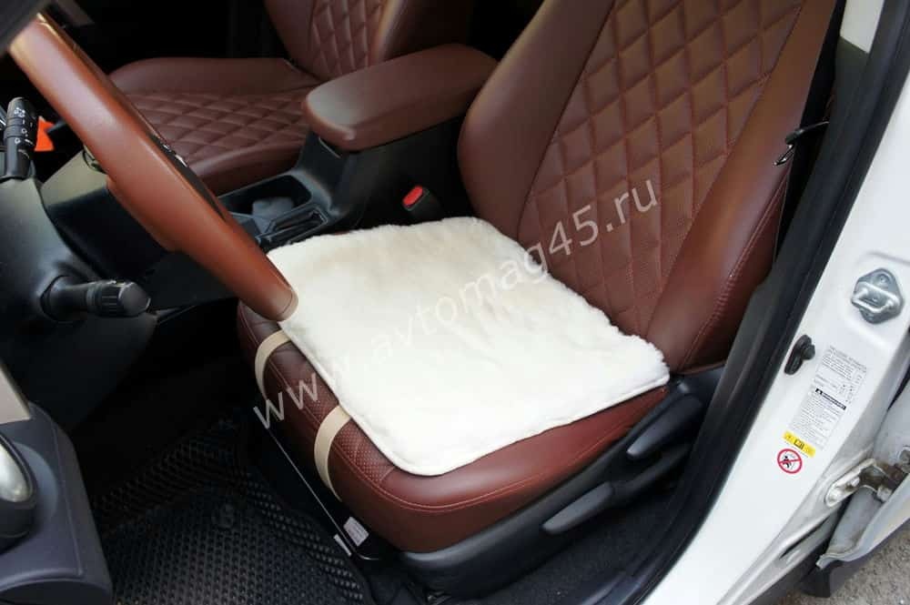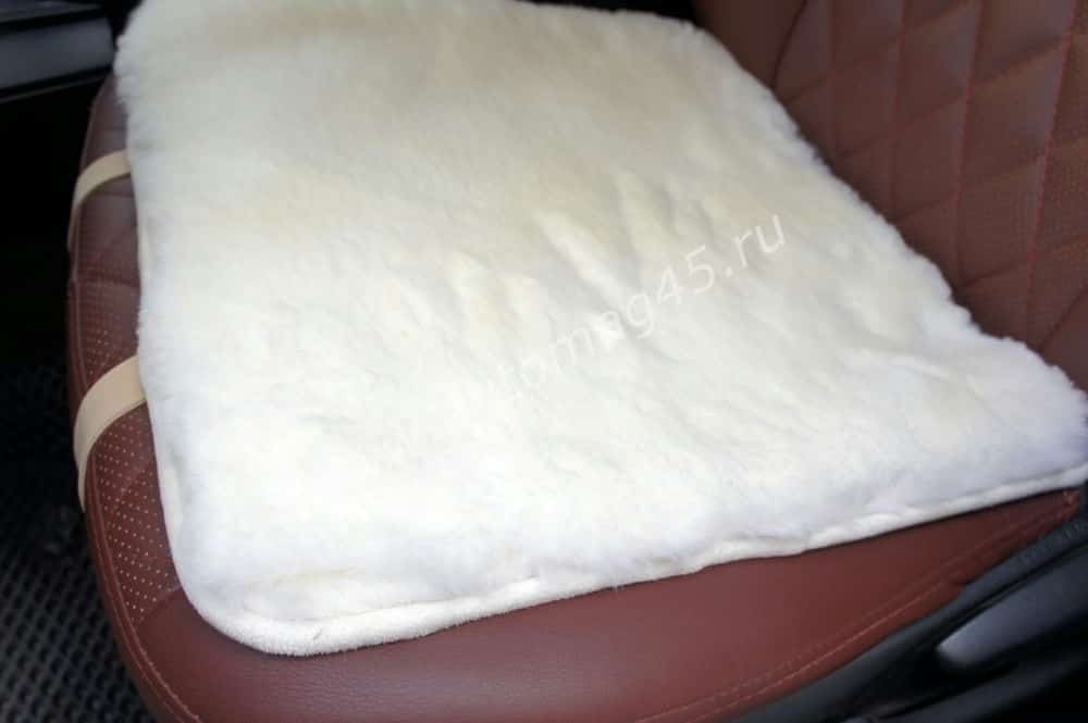 Накидка подушка на сиденье короткий ворс белый 45х45см