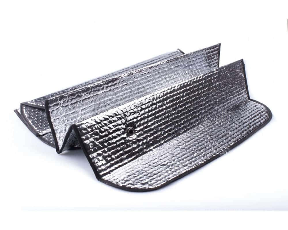 Избежать вредного воздействия ультрафиолета на внутреннюю обшивку автомобиля, понизить температуру в салоне помогут специальные солнцезащитные шторки для автомобиля. Это непрозрачная трёхслойная конструкция, состоящая из двух слоев плёнки и внутреннего слоя, сделанного из пористого тонкого материала. Наружный слой шторки покрыт светоотражающим напылением.