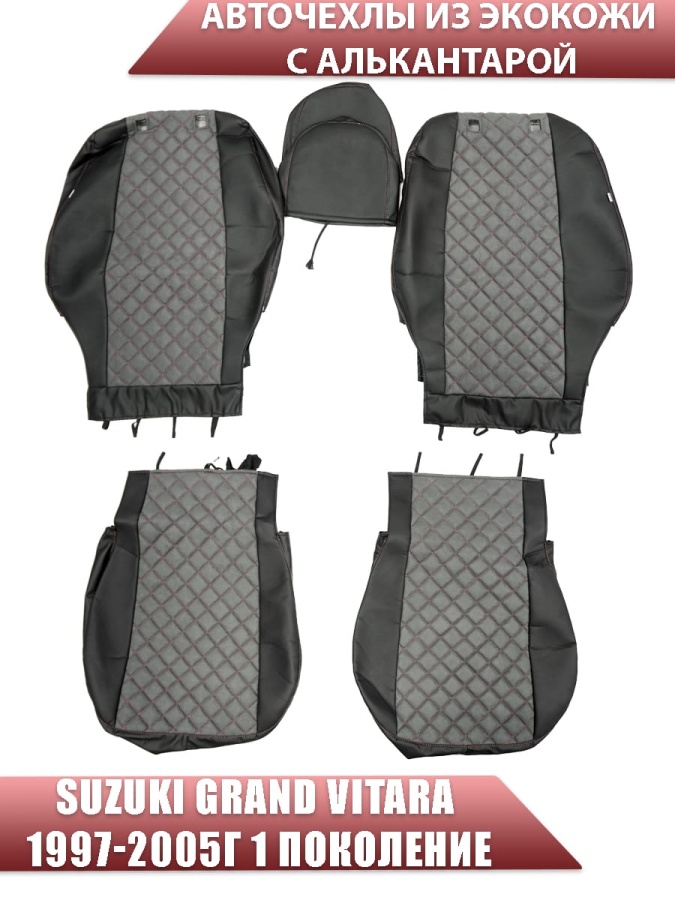 Авточехлы Suzuki Grand Vitara Сузуки Гранд Витара 97-05г 5-двер экокожа черная алькант ромб 50/50