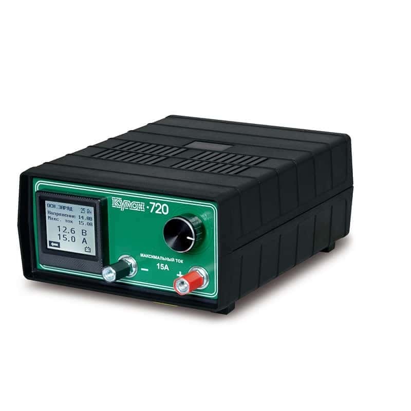 Зарядное устройство Кулон-720 предназначено для заряда всех типов аккумуляторных батарей — щелочных, гелевых, AGM, WET, GEL с напряжением 6 — 12 Вольт и емкостью 5 — 200 Ач, которые применяются на автомобилях, мотоциклах, катерах и т.д.