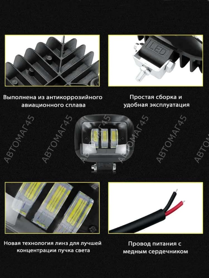 Данные фары предназначены для езды в условиях бездорожья и сложных погодных условиях, а также для тех, кто увлекается рыбалкой и охотой. Фары могут быть установлены на любое транспортное средство: внедорожники, вездеходы, квадроциклы, мотоциклы, грузовики, экскаваторы, и т. д. Корпус выполнен из алюминиевого сплава, стойкого к коррозии и температурному воздействию, полностью водонепроницаем, влагозащищен согласно европейскому стандарту IP67. Фары отвечают самым высоким требованиям качества, надежности и долговечности.