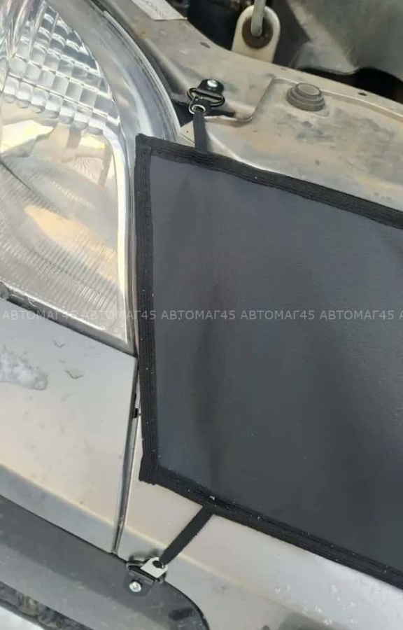 Универсальная система креплений в виде резинок и крючков позволяет надежно зафиксировать изделие, идеально повторяя контуры решетки радиатора.