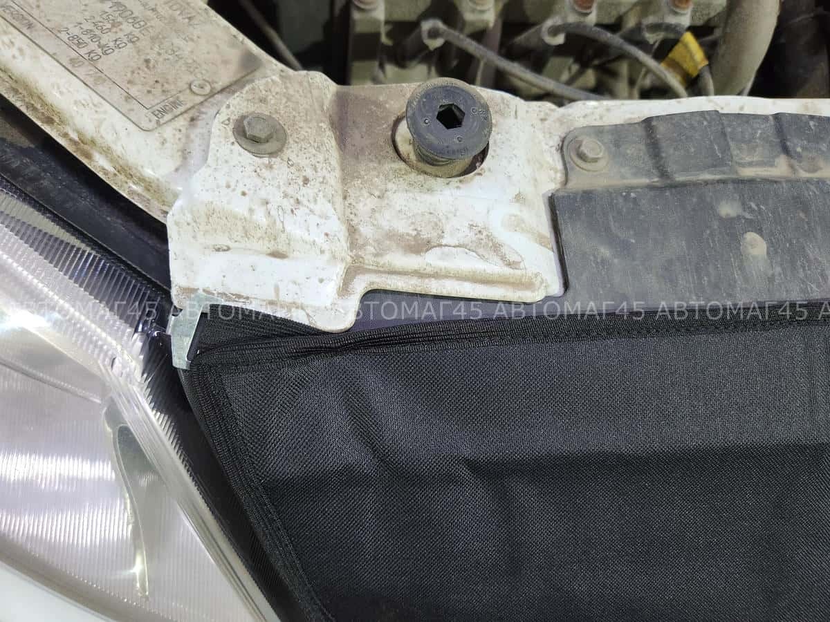 Универсальная система креплений в виде резинок и крючков позволяет надежно зафиксировать изделие, идеально повторяя контуры решетки радиатора.