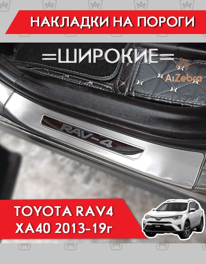 Накладки на внутр пороги Toyota RAV4 XA40 Тойота Рав4 ХА40 2013-2019г широкие алюминий 4шт