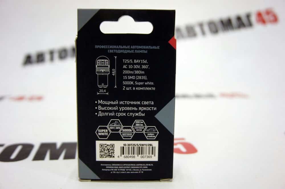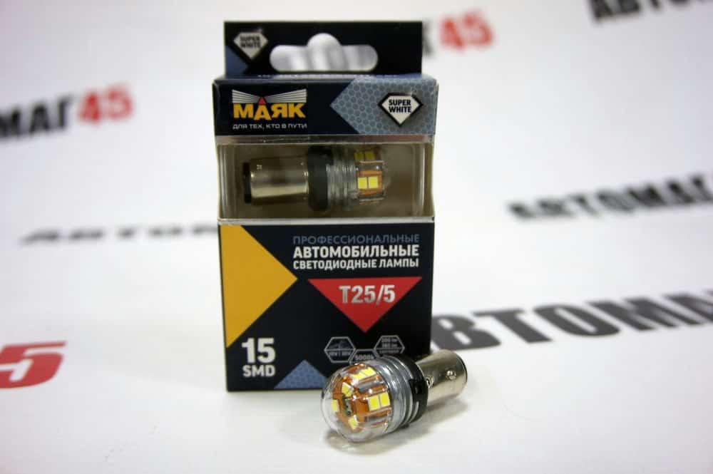Маяк лампа светодиодная T25/5 21W 15 SMD с цоколем 5000K 420Lm двухконтактная белая 2шт