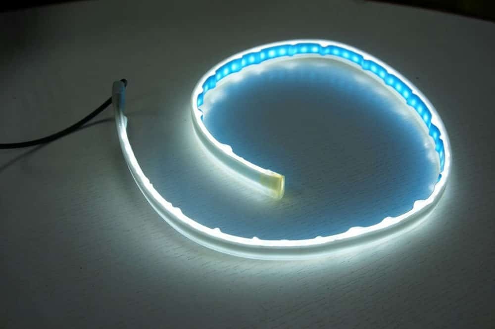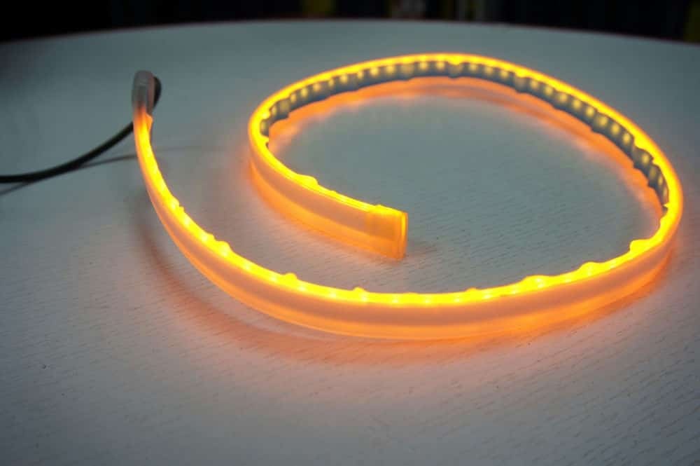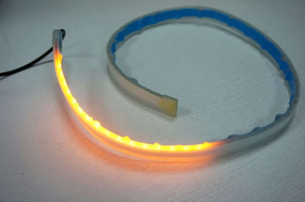 В обычном режиме гибкие ДХО светят как ходовые огни, то есть ярким белым светом, а при включении поворотника - мигают желтым светом.
