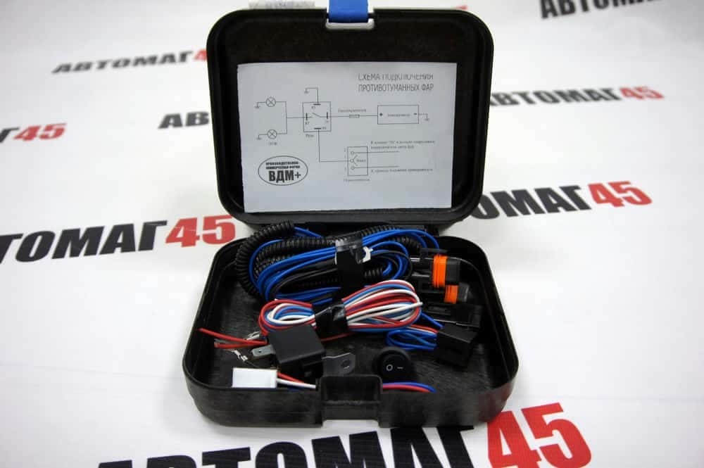 Комплект: проводка, кнопка, реле, предохранители, клипсы, хомуты