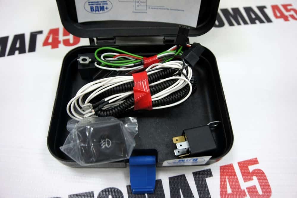 Комплект: проводка, кнопка, реле, предохранители, клипсы, хомуты
