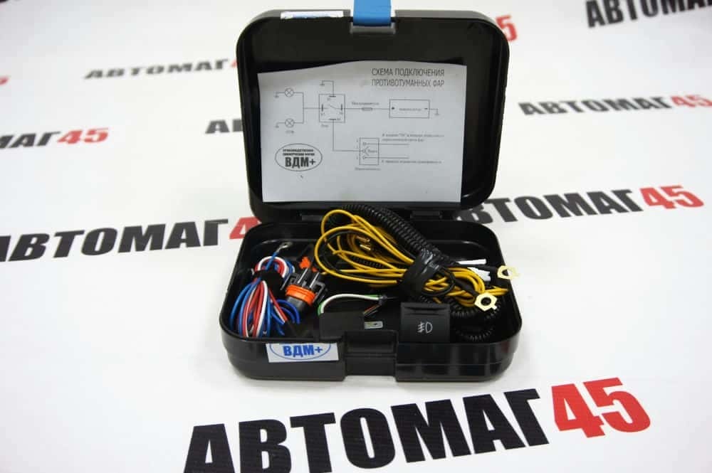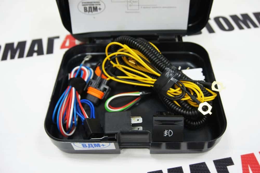 Комплект: проводка, кнопка, реле, предохранители, клипсы, хомуты