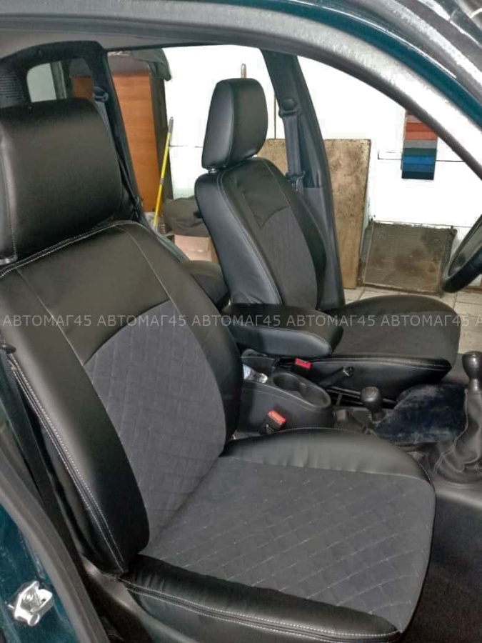 Авточехлы Нива Шевроле 2014-2020г Niva Travel с 2020г экокожа алькантара черная с серой ниткой ромб