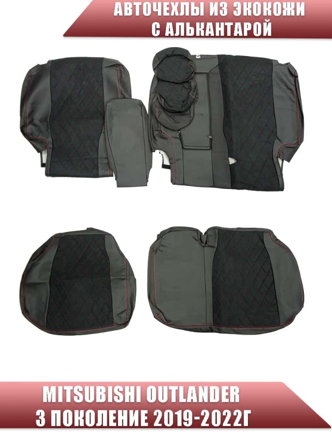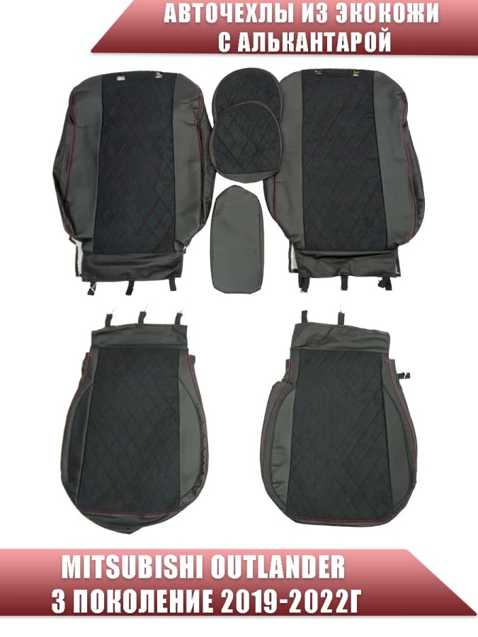 Авточехлы Mitsubishi Outlander 3 пок 2019-2025г экокожа алькантара черная красная нить ромб Maximal