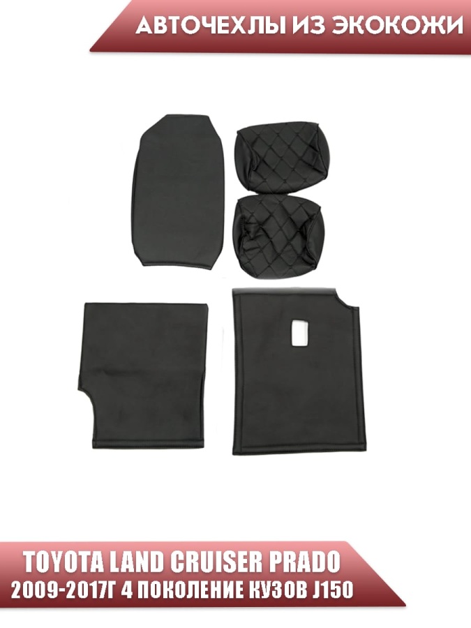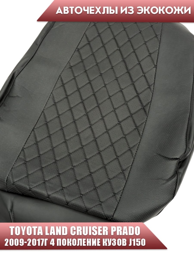 Авточехлы Toyota Land Cruiser Prado 2009-2017г кузов J150 экокожа черная серая нить ромб Maximal