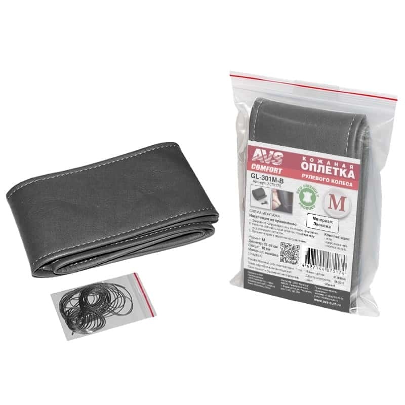 AVS оплетка руля под шнуровку экокожа гладкая черная размер М диаметр 37-39см обхват 10см