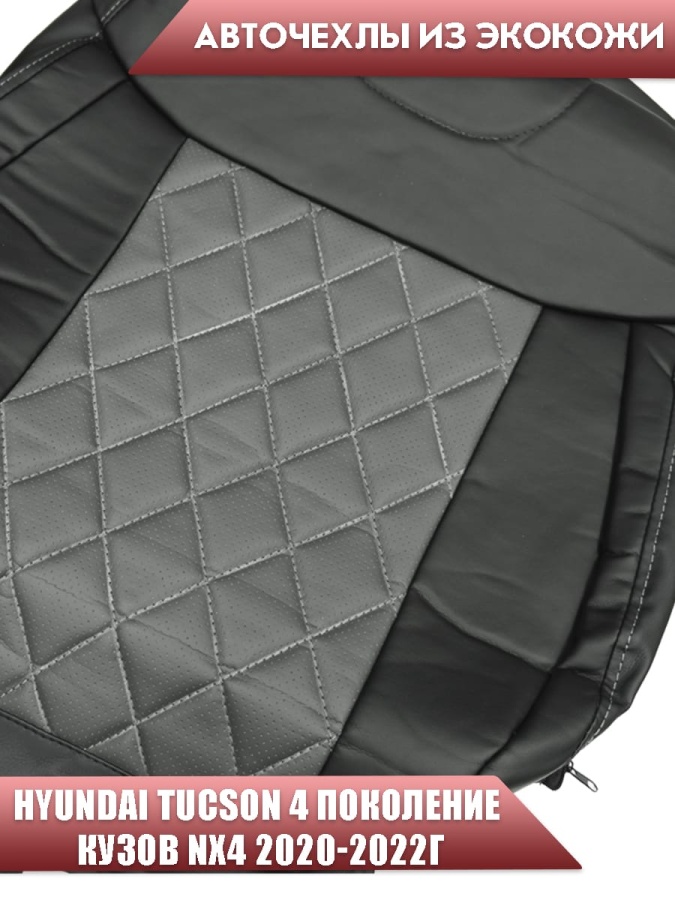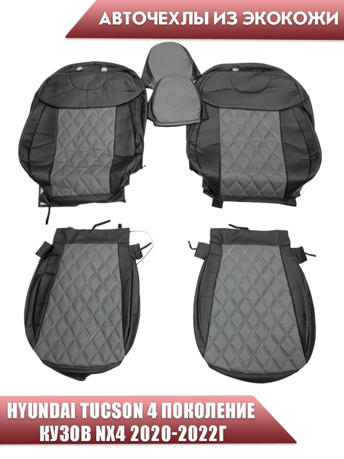 Авточехлы Hyundai Tucson 4 Хендай Туксон 4 2020-2022г экокожа черный серый нить серая ромб Динас