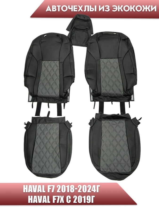 Авточехлы Haval Хавал F7 1пок 2018-2024г F7X 2019г-2024г экокожа черный серый ромб Динас