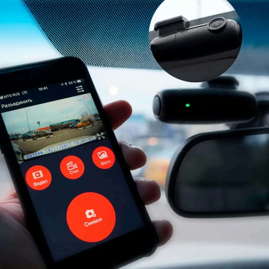 Старт/стоп записи Фотоснимки Онлайн просмотр и загрузка отснятого материала в память мобильного устройства Изменение настроек (разрешение видео, цикличность, запись звука, настройка чувствительности G-сенсора, отображения данных на видео, настройки Wi-Fi соединения, форматирование карты памяти и др.)