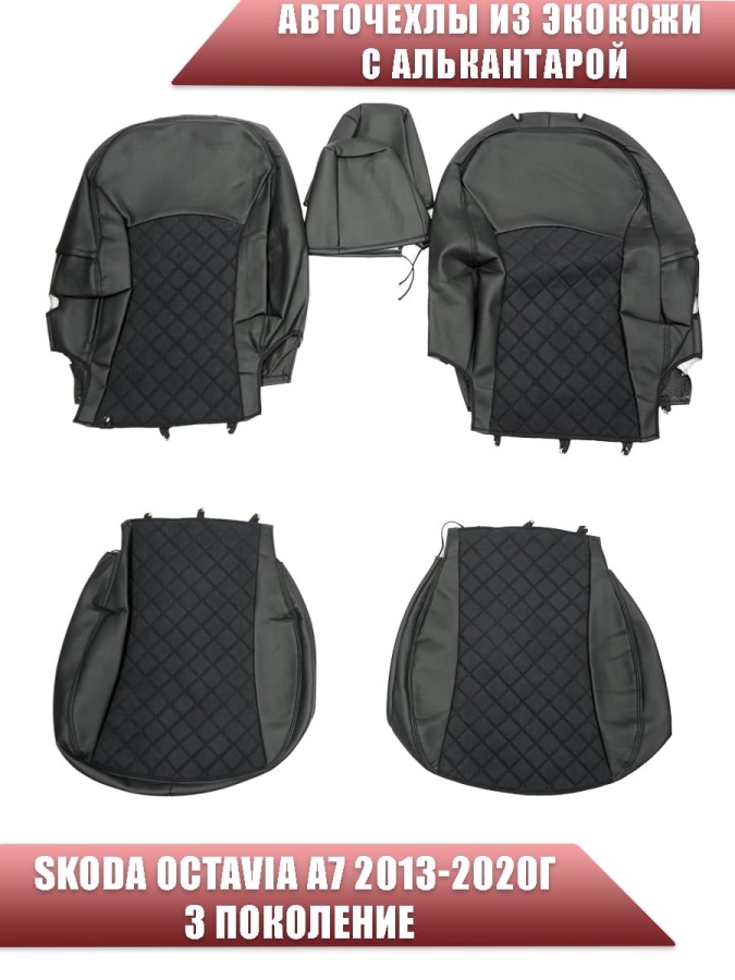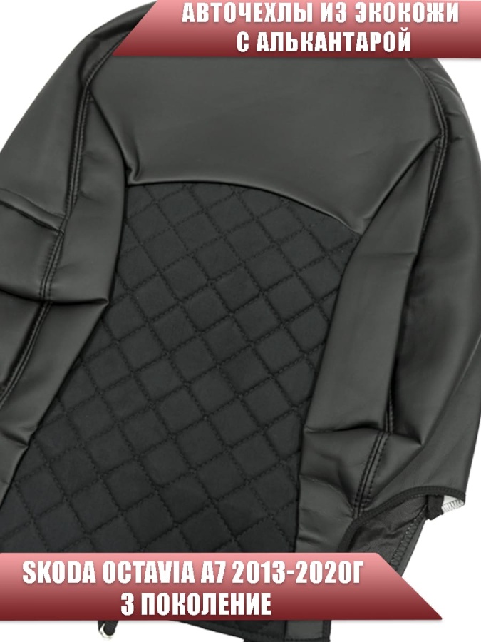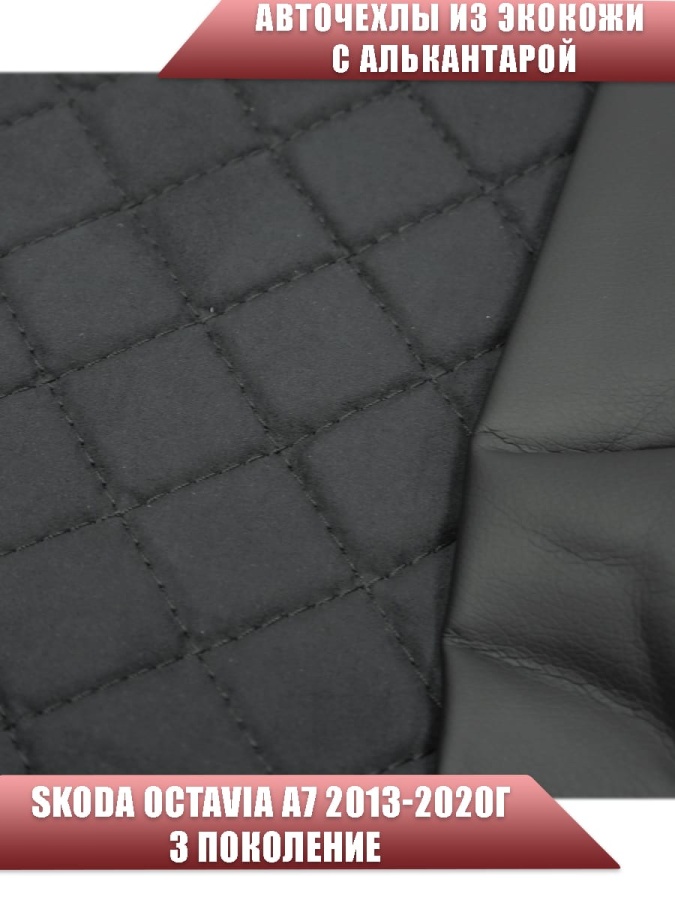 Авточехлы Skoda Octavia А7 Шкода Октавиа А7 2013-2020г экокожа алькантара черная серая нить ромб