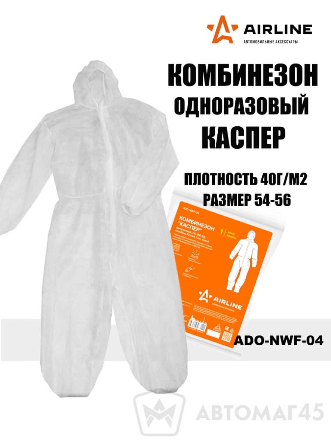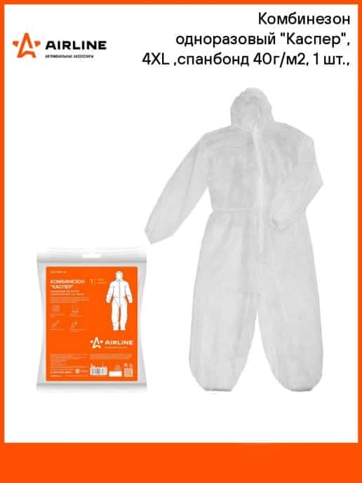 Airline комбинезон одноразовый Каспер спанбонд 40г/м2 4XL (54-56) белый