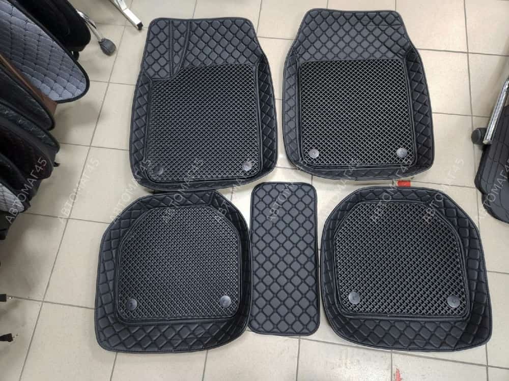 Коврики универсальные с бортиком экокожа съемный eva черный комплект 5шт