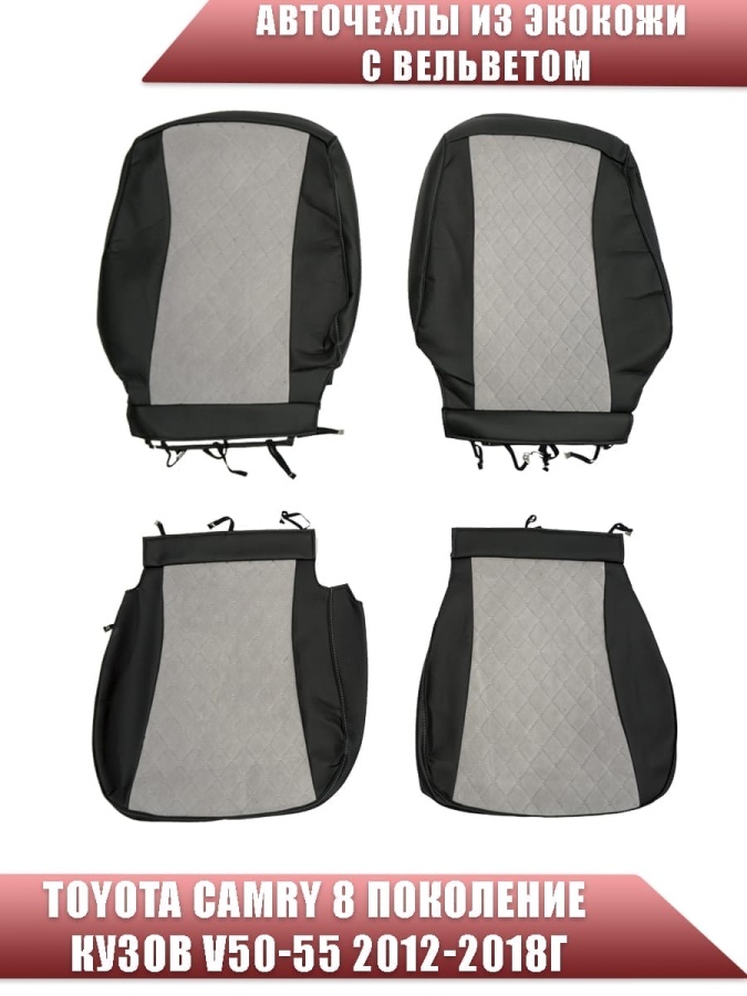 Авточехлы Toyota Camry Тойота Камри 2012-2018г кузов V50-55 экокожа вельвет черно-серый ромб