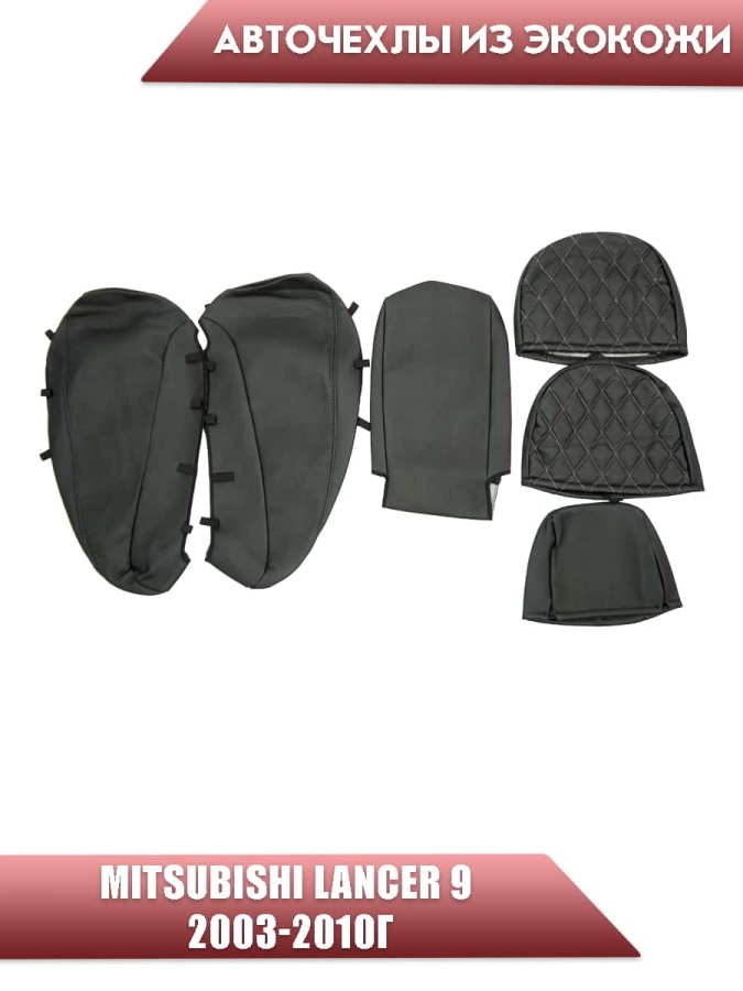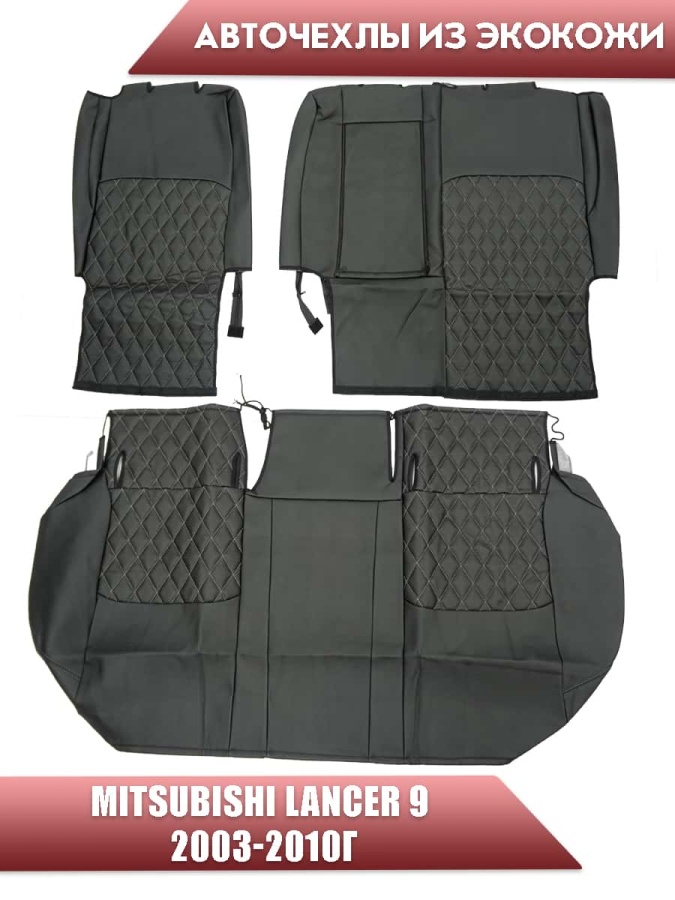 Авточехлы Mitsubishi Lancer 9 Мицубиси Лансер 9 2003-2010г экокожа черная серая нить ромб универсал