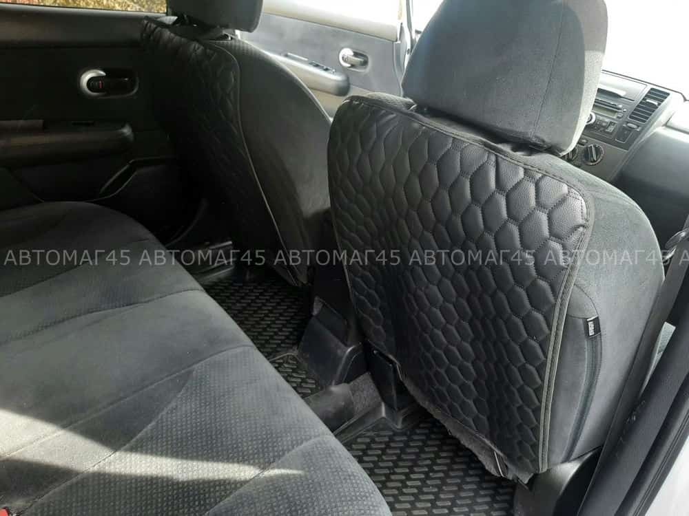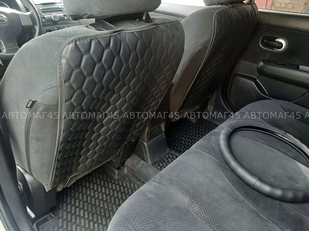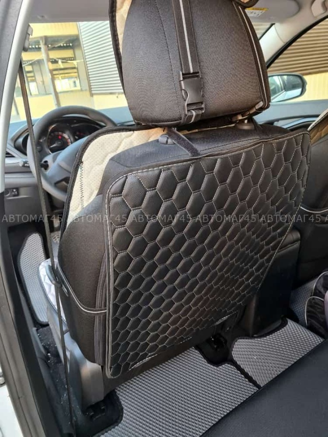 Защита заднего сиденья без кармана экокожа черная черно-серая ромб соты 63х48см