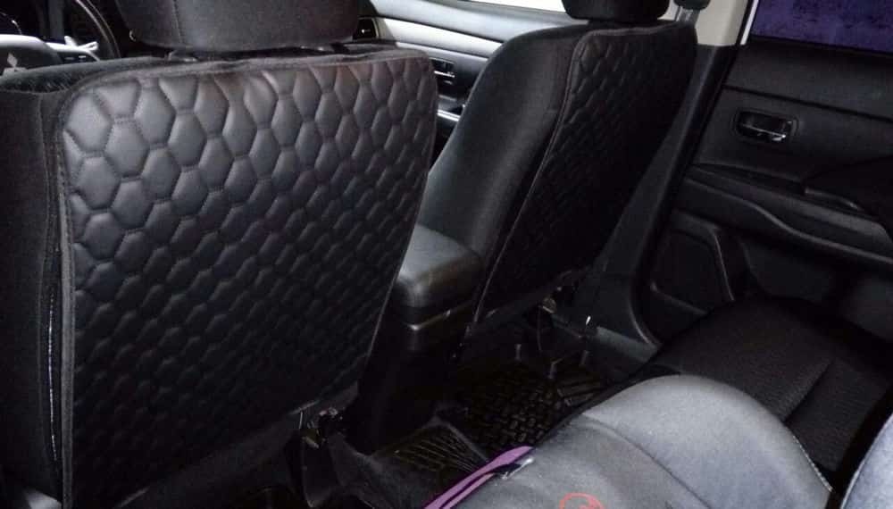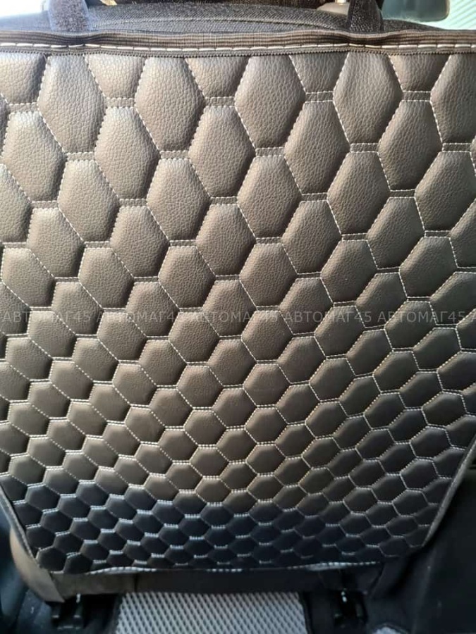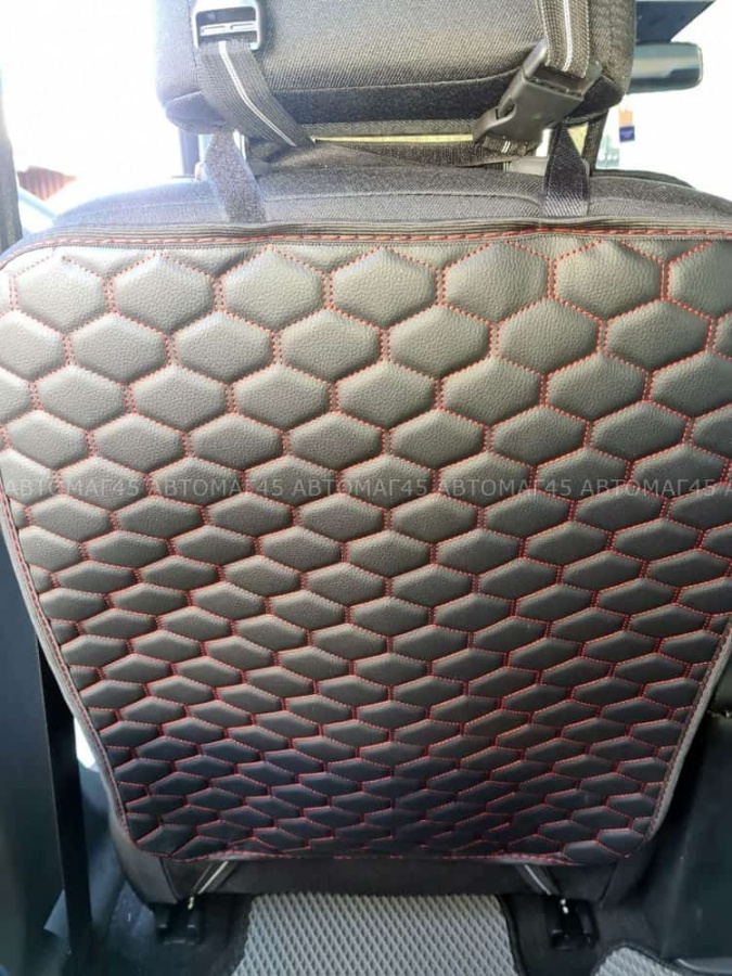 Накладка из экокожи премиально качества для спинки сидений предназначена для защиты от грязи с ног пассажира или ребенка. Легко крепится и прекрасно дополняет интерьер автомобиля.