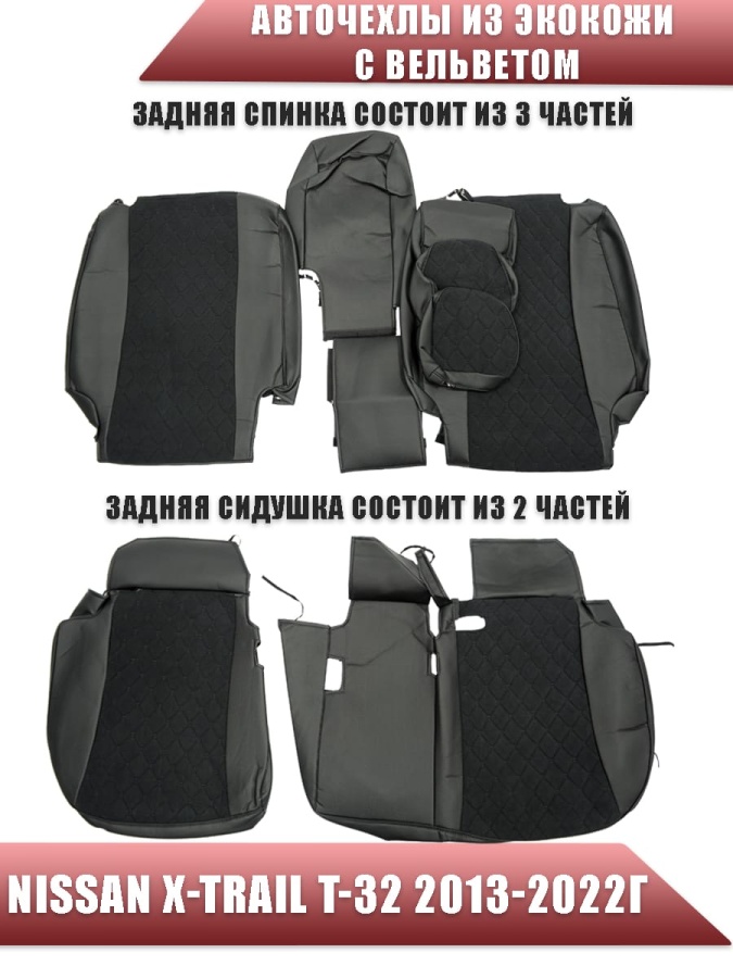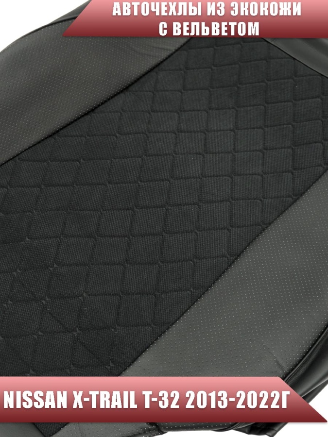 Авточехлы Nissan X-Trail Ниссан Х-Трейл 2013-2022г кузов T32 черный вельвет черная нить ромб