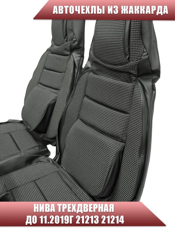 Авточехлы Нива трехдверная до 11.2019г 21213 21214 жаккард черно-серый