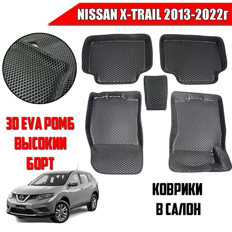 BORATEX коврики в салон 3D EVA ЭВА Nissan X-Trail 2013-2022г черные рисунок ромб комплект 5шт