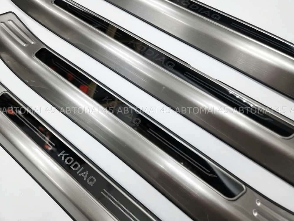 Накладки на внутр пороги Skoda Kodiaq Шкода Кодиак 2016-2023г широкие алюминий 4шт