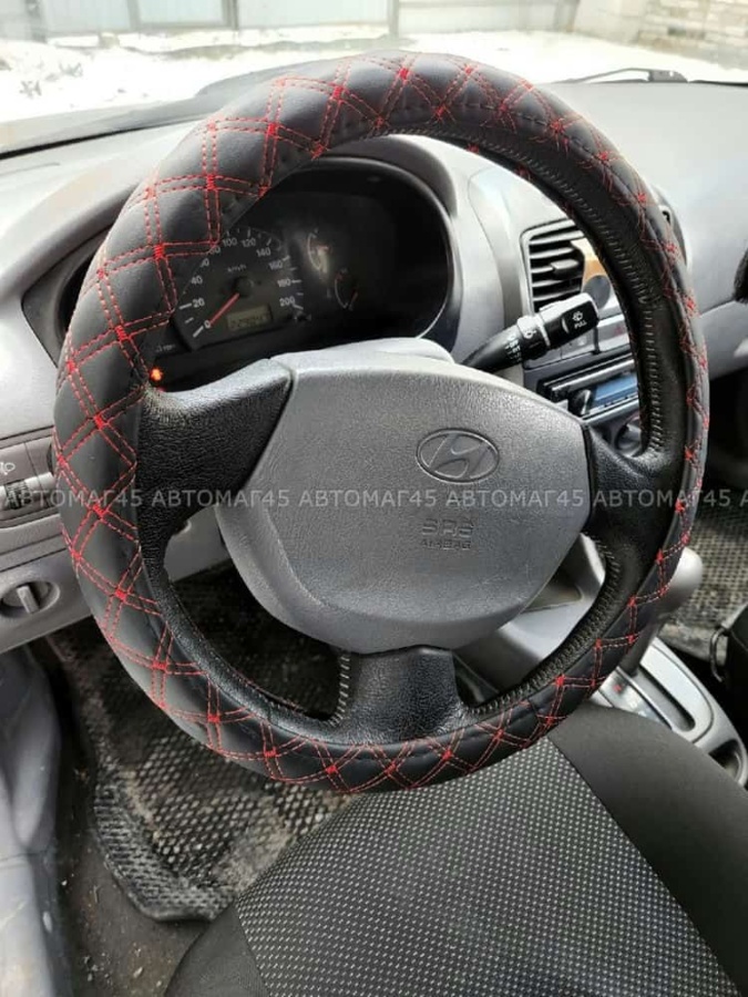 C2R оплетка руля кожа черная двойной ромб красная нитка размер 37-39см М С504R