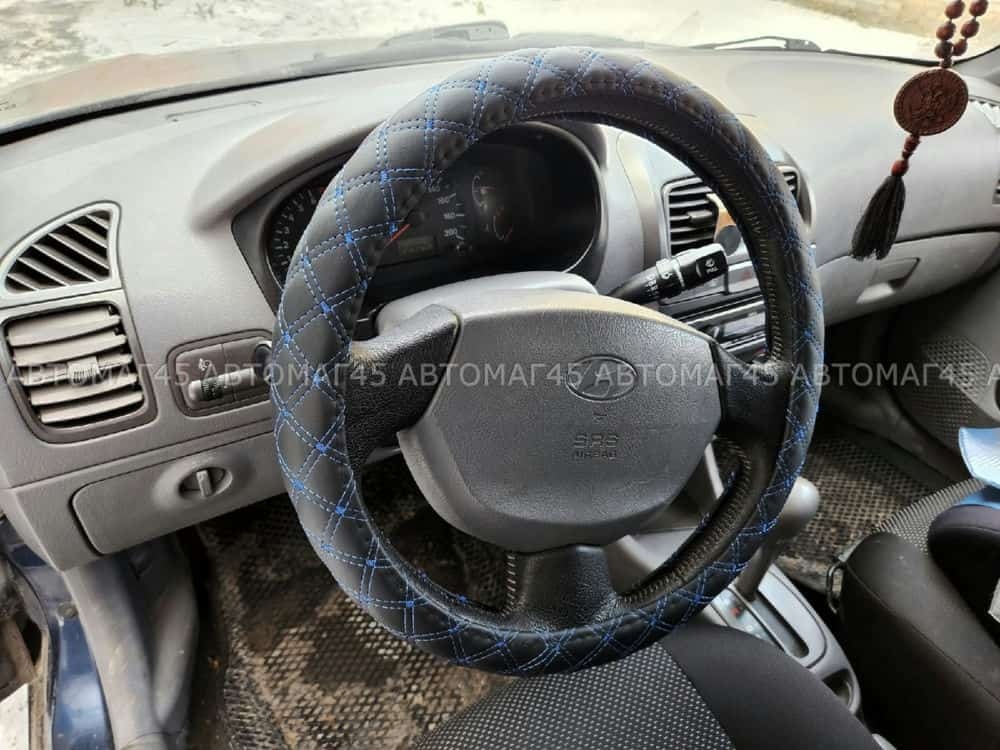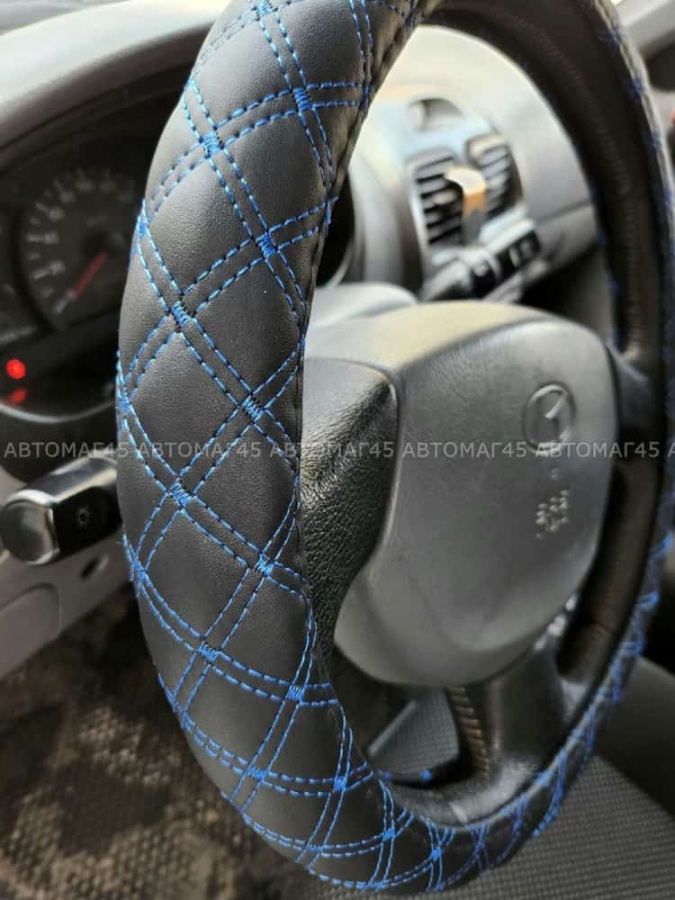 C2R оплетка руля кожа черная двойной ромб синяя нитка размер 37-39см М С504