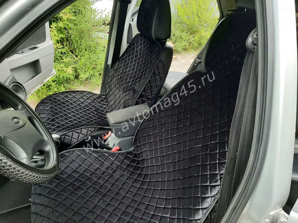Гелакси Накидки на сиденье универсальные велюр передние черные с боками с черной ниткой 1шт