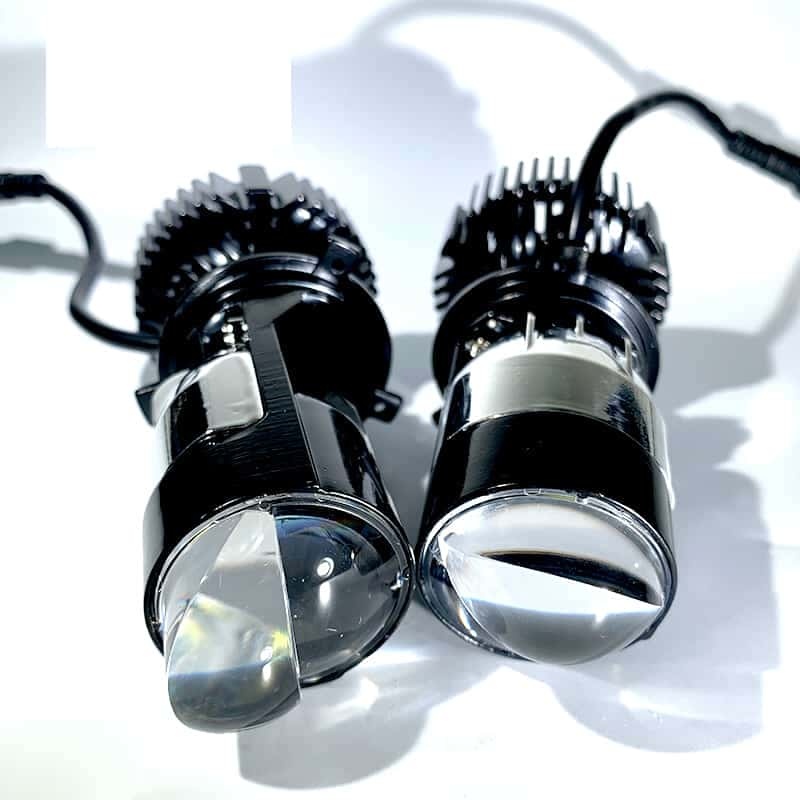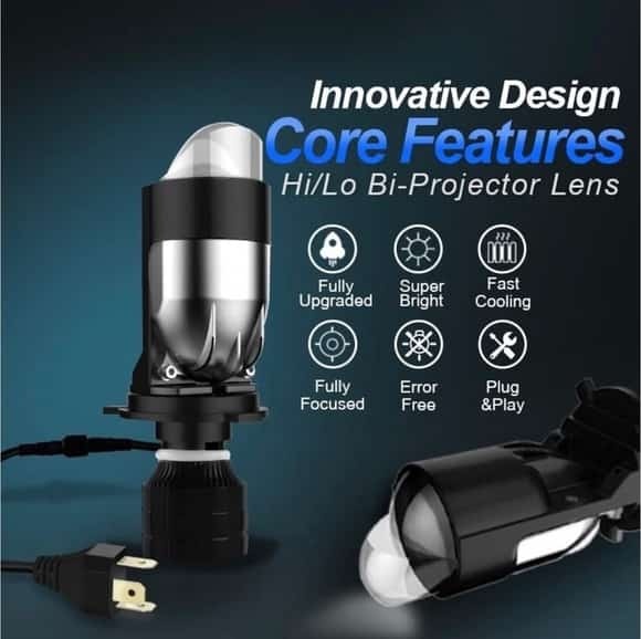 Главное преимущество лампы это наличие линзы и собственного отражателя. Охлаждающий вентилятор не дает лампе перегреваться во время работы. За счет конструкции при свечении соблюдается четкая свето-теневая граница. Подходят к фарам любого автомобиля с цоколем H4, простая установка, не требующая разбора и изменения конфигурации фары.