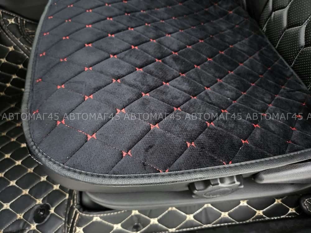 -Не сползет и не перекосится, так как нижний силиконовый слой надежно держит накидку на месте. При этом штатные сиденья могут быть и велюр и кожа.