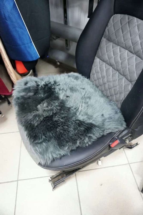 Накидка подушка на сиденье длинный ворс серый 44х44см