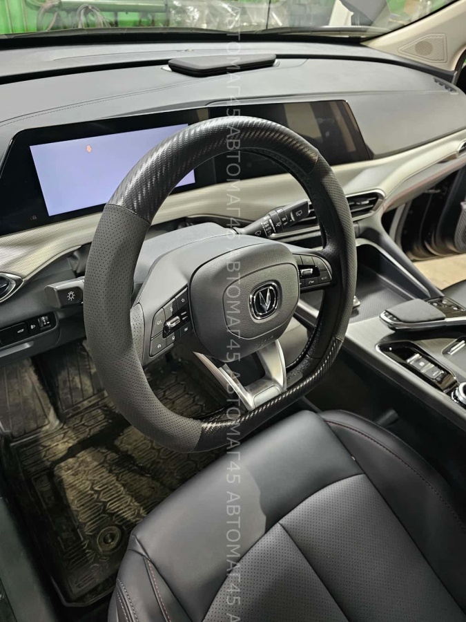 Оплетка на скошенный снизу руль из прочной эко кожи позволит выделить его оригинальный дизайн и подчеркнет нестандартные формы.