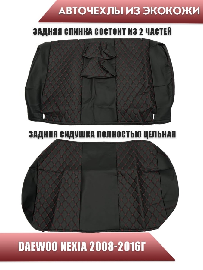 Авточехлы Daewoo Nexia Дэу Нексиа 2008-2016г экокожа черная красная нить ромб