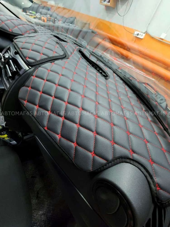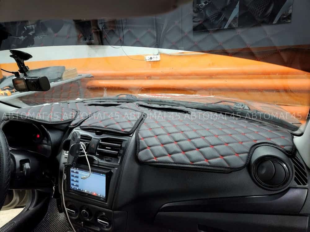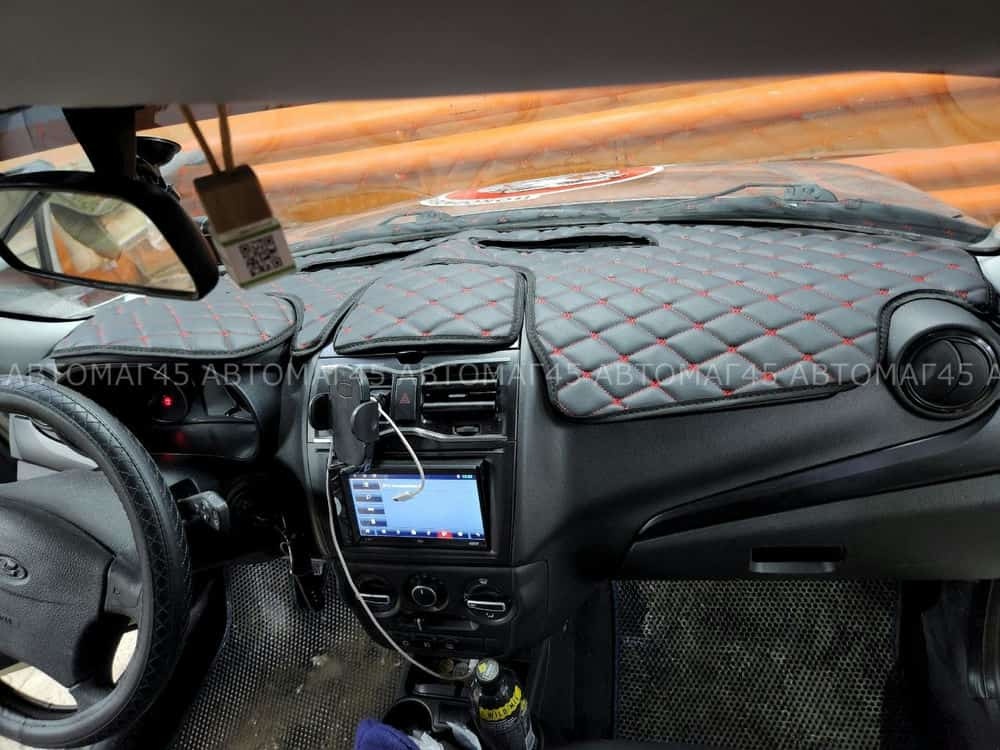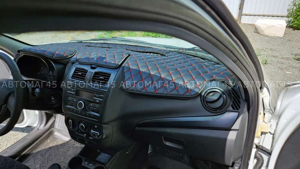 Накидка на панель Lada Granta Гранта FL с 2018г Lada Kalina Калина 2 с 2013г с красной ниткой экокож