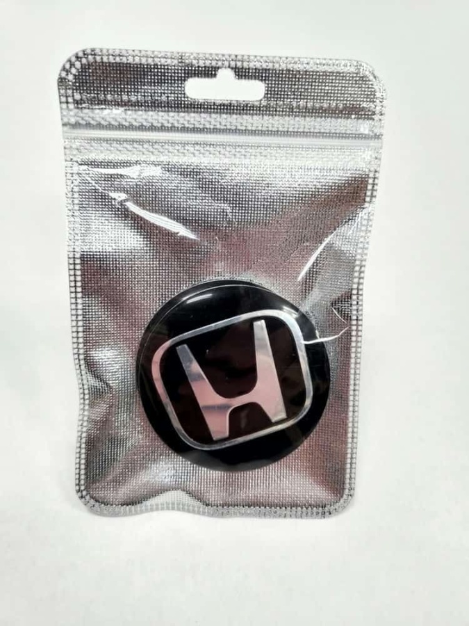 Наклейка на колпаки Honda сферическая изогнутая 5,4см 4шт черная (226768)