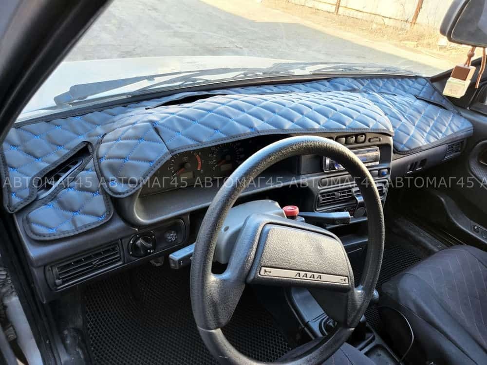 Накидка на панель ВАЗ 2114 2115 только европанель с синей ниткой экокожа