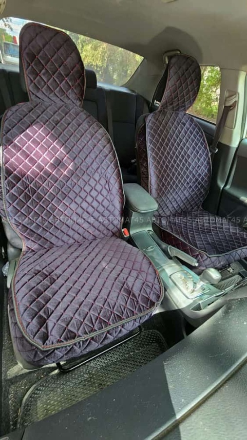 Гелакси Накидки на сиденье на силиконе велюр черные с красной ниткой 2шт