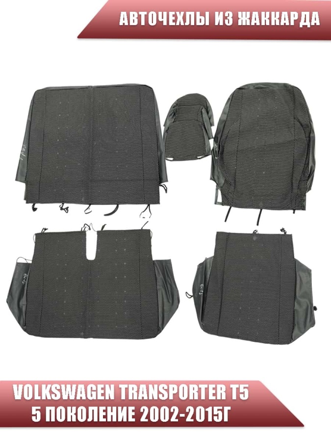 Авточехлы Volkswagen Transporter Транспортер T5 5 поколение 2002-2015г жаккард черный