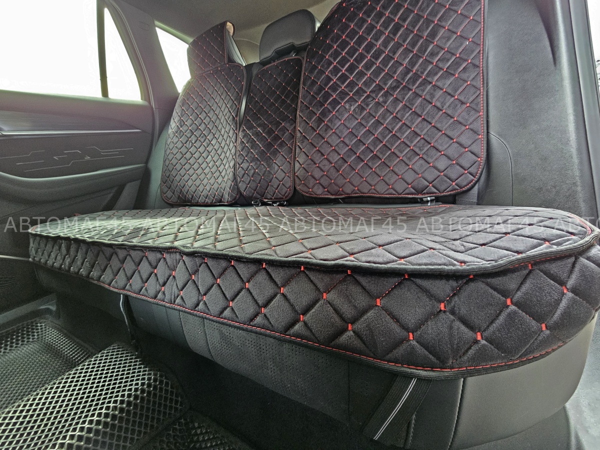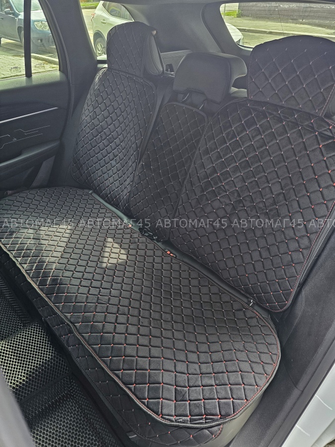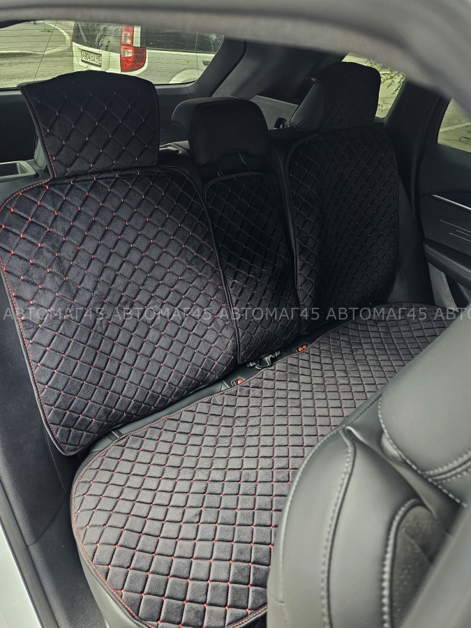 Гелакси Накидки на сиденье на силиконе велюр задний ряд черные с красной ниткой 3шт