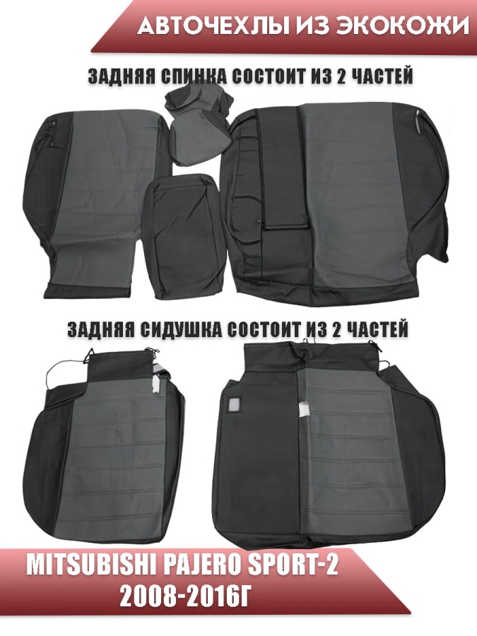 Авточехлы Mitsubishi Pajero sport-2 Мицубиси Паджеро спорт-2 2008-2016г экокожа черно-серый