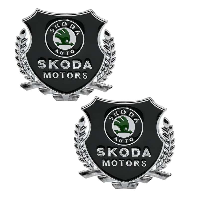 Шильдик Skoda Motors черный металл 55*50мм 2шт SHK K207